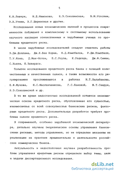 Исследование новых экономических явлений и процессов современности побуждает к комплексному и системному использованию научного наследия отечественных и зарубежных ученых по проблемам кредитного риска.