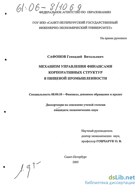 Вместе с тем, изучение источников по теме диссертационного исследования показало, что анализу специфики управления финансами корпоративных структур в отраслях экономики уделено недостаточное внимание. Предлагаемые в теории модели механизма управления финансами корпоративных структур носят общий характер и не учитывают отраслевую специфику пищевой промышленности; отсутствуют научно обоснованные рекомендации по формированию механизма управления финансами корпоративных структур в пищевой промышленности, что и определило выбор темы диссертационного исследования.