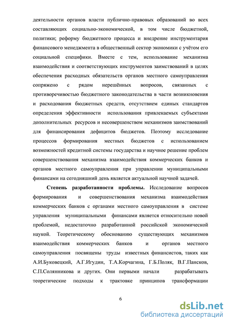 Степень разработанности проблемы. Исследование вопросов формирования и совершенствования механизма взаимодействия коммерческих банков с органами местного самоуправления в системе управления муниципальными финансами является относительно новой проблемой, недостаточно разработанной российской экономической наукой.