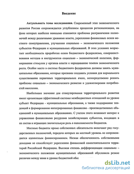 Актуальность темы исследования. Современный этап экономического развития России сопровождается углублением процессов регионализации, на фоне которых наиболее важными становятся проблемы разграничения полномочий между различными уровнями власти, укрепления финансовых основ местного самоуправления, улучшения социально - экономического положения субъектов Федерации и муниципальных образований. В этих условиях возрастает необходимость проработки основ бюджетного федерализма, совершенствования методов и инструментов социально - экономической политики, формирования стимулов у органов власти к наращиванию темпов экономического роста. Особое место в системе бюджетного федерализма должны занять муниципальные образования, которые призваны создавать условия для нормального существования первичных территориальных ячеек, непосредственно решать проблемы социально - экономического развития и удовлетворения потребностей населения.