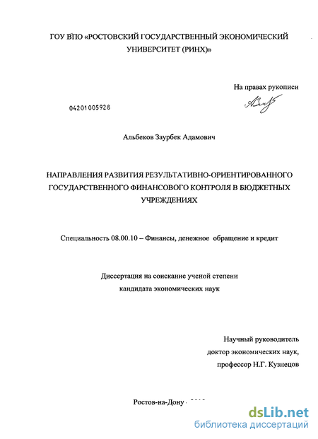 Апробация результатов исследования. Основные положения, выводы и рекомендации, сформулированные в диссертационной работе, докладывались на региональных, межвузовских научных конференциях. Материалы диссертационного исследования используются в учебном процессе ГОУ ВПО «РГЭУ (РИНХ)» при проведении лекционных и практических занятий по курсам «Государственный финансовый контроль», «Финансы бюджетных и автономных учреждений», «Бюджет и бюджетная система РФ». Рекомендации диссертационной работы находят практическое применение при составлении аналитических материалов в Территориальном управлении Федеральной службы финансово-бюджетного надзора Ростовской области.
