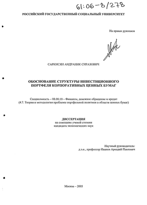 Теоретическую и методологическую базу исследования составляют фундаментальные положения, содержащиеся в трудах отечественных и зарубежных ученых, специалистов в области экономики и финансового менеджмента, анализа портфельной теории, прикладные разработки зарубежных институциональных инвесторов, а также основные категории и инструментарий, вытекающие из Международных стандартов финансовой отчетности (МСФО).