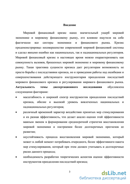 Степень научной разработанности темы. Проблемы оценки эффективности инструментов преодоления последствий глобального финансового кризиса представлены в исследованиях Международного валютного фонда (МВФ) и других наднациональных финансово-экономических институтов. В них содержится анализ основных факторов и механизмов современного финансового кризиса, статистическая база по применяемым инструментам преодоления его последствий, рассматриваются вопросы восстановления и поддержания стабильности на финансовых рынках. В работах отечественных авторов исследуются основные факторы мирового финансового кризиса, ключевые аспекты регулирования мирового финансового рынка, анализируются проблемы системных рыночных рисков.