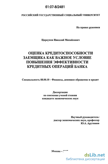 В настоящее время важной является задача разработки такого механизма оценки кредитоспособности заемщиков, который обеспечивал бы устойчивое поступление кредитных ресурсов предприятиям и, одновременно, - их своевременный возврат банкам.