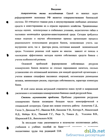 Белоглазовой, .К.И.Тагирбекова, В.Н.Тавасиева, Г.Г Коробова и др. Несмотря на это, проблемы эффективного использования ресурсной базы коммерческих банков до сих пор остаются актуальными: ощущается недостаток конкретных организационно-методических разработок, ориентированных на реальные условия банковской деятельности, не согласованы аспекты выбора и включения факторов риска в модели оценки формирования собственных ресурсов, слабо организована адаптация процесса управления банками к внешней экономической среде, использование специальных инструментов банковской политики, направленных на снижение риска.