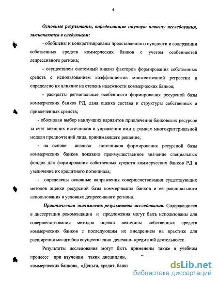 - определены основные направления совершенствования существующих методов оценки ресурсной базы коммерческих банков и ее рационального использования в условиях депрессивного региона.