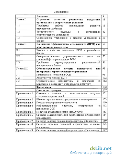 6. Предложен механизм адаптации ССП к реалиям российской действительности с учетом требований стандартов менеджмента качества серии «ИСО 9000» и на основе использования взгляда «извне» на принципы функционирования отечественной банковской системы и передовые теоретические подходы по организации банковского бизнеса. Это позволило предложить прозрачную систему показателей, которая учитывает технологические, информационные, нормативно-правовые реалии российского банковского бизнеса и соответствует тенденциям передовой международной практики в области стратегического управления.