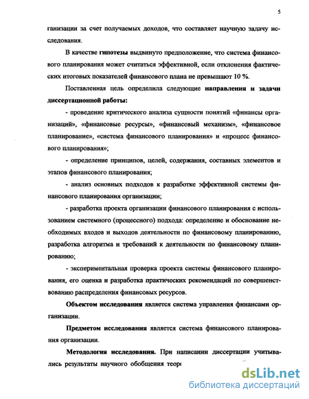 Целью диссертации является разработка теоретических и методических основ формирования эффективной системы финансового планирования, позволяющей полностью и своевременно финансировать обязательства ор ганизации за счет получаемых доходов, что составляет научную задачу исследования.