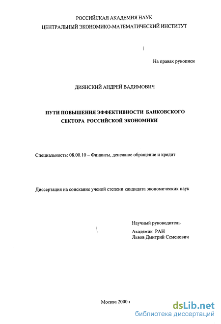 Глава 3. Пути повышения эффективности системы коммерческих банков России 117