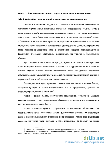 ГЛАВА 1. ТЕОРЕТИЧЕСКИЕ ОСНОВЫ ОЦЕНКИ СТОИМОСТИ ПАКЕТОВ АКЦИЙ 12