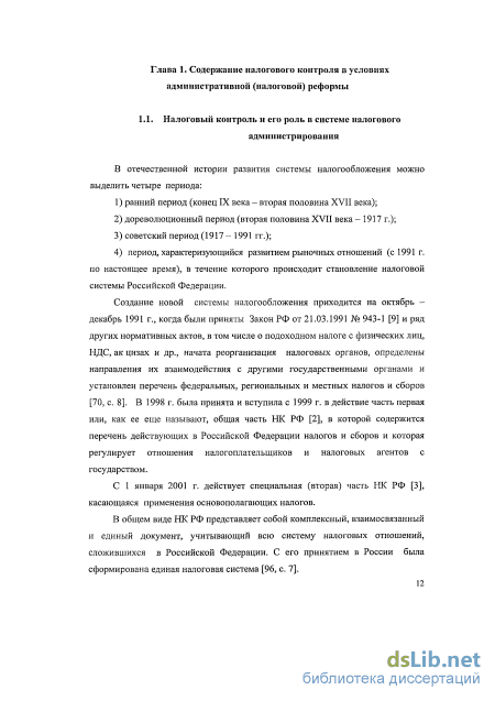 Глава 1. Содержание налогового контроля в условиях административной (налоговой) реформы