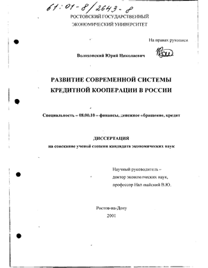 Недостаточная изученность этой проблемы, ее актуальность, вытекающая из необходимости целенаправленного развития системы кредитной потребительской кооперации в России и в Ростовской области, определили выбор темы диссертации.