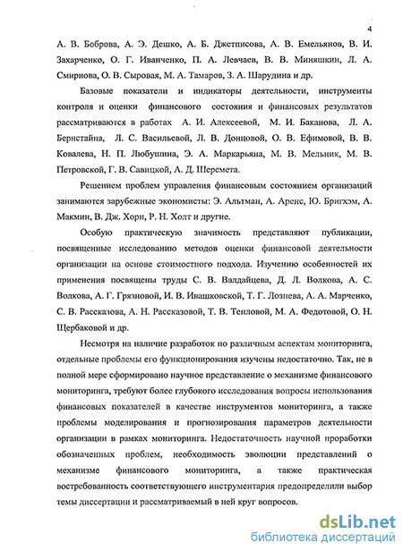 Несмотря на наличие разработок по различным аспектам мониторинга, отдельные проблемы его функционирования изучены недостаточно. Так, не в полной мере сформировано научное представление о механизме финансового мониторинга, требуют более глубокого исследования вопросы использования финансовых показателей в качестве инструментов мониторинга, а также проблемы моделирования и прогнозирования параметров деятельности организации в рамках мониторинга. Недостаточность научной проработки обозначенных проблем, необходимость эволюции представлений о механизме финансового мониторинга, а также практическая востребованность соответствующего инструментария предопределили выбор темы диссертации и рассматриваемый в ней круг вопросов.