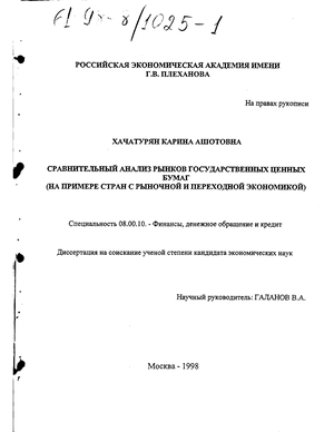 -на основе сопоставления хода формирования отечественного рынка ГЦБ с мировым показано, что он находится на пути становления, для него характерно неравномерное развитие, в нем в ряде случаев эклектически сочетается опыт разных стран как с рыночной, так и с переходной экономикой;