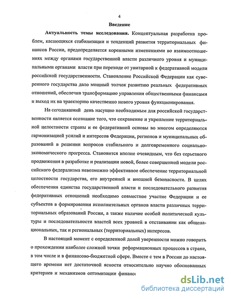 Актуальность темы исследования. Концептуальная разработка проблем, касающихся стабилизации и тенденций развития территориальных финансов России, предопределяется коренными изменениями во взаимоотношениях между органами государственной власти различного уровня и муниципальными органами власти при переходе от унитарной к федеративной модели российской государственности. Становление Российской Федерации как суверенного государства дало мощный толчок развитию реальных федеративных отношений, обеспечив трансформацию управления общественными финансами и выход их на траекторию качественно нового уровня функционирования.