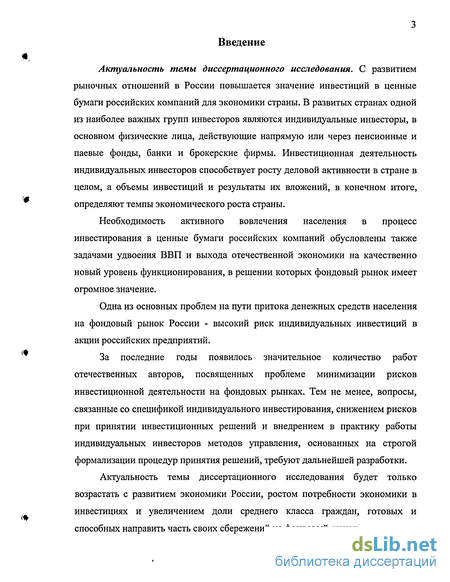За последние годы появилось значительное количество работ отечественных авторов, посвященных проблеме минимизации рисков инвестиционной деятельности на фондовых рынках. Тем не менее, вопросы, связанные со спецификой индивидуального инвестирования, снижением рисков при принятии инвестиционных решений и внедрением в практику работы индивидуальных инвесторов методов управления, основанных на строгой формализации процедур принятия решений, требуют дальнейшей разработки.