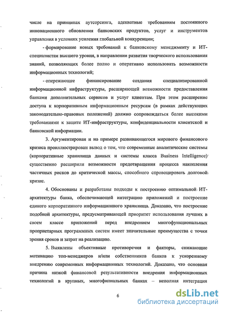 Г. .Выявлены; и: исследованы новые условиям и тенденции, развития; российского банковского бизнеса;, сформировавшиеся- на» базе: активного использования информационных, технологий; ш глобальных информационных ресурсов, которые определяют особенности и динамику егоразвития в; средне- иг долгосрочной перспективе. Среди них: расширение линейки и каналов предоставления банковских продуктов = и услуг; динамичное снижение операционных издержек за.счет оптимизации бйзнестпроцессов;и централизации? функций, в т.ч. бэк-офисных, а.также, изменения; формата сети ж точек, продаж; повышение качества- управления, за; счет анализа в реальному времени экономических показателей и уровня рисков., при высокой чувствительности банковского бизнеса к возмущениям на мировых финансовых и валютных рынках.