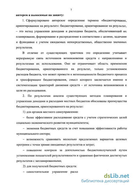 2. По результатам анализа существующих методов формирования местных бюджетов обоснованы преимущества бюджетирования, ориентированного на результат: