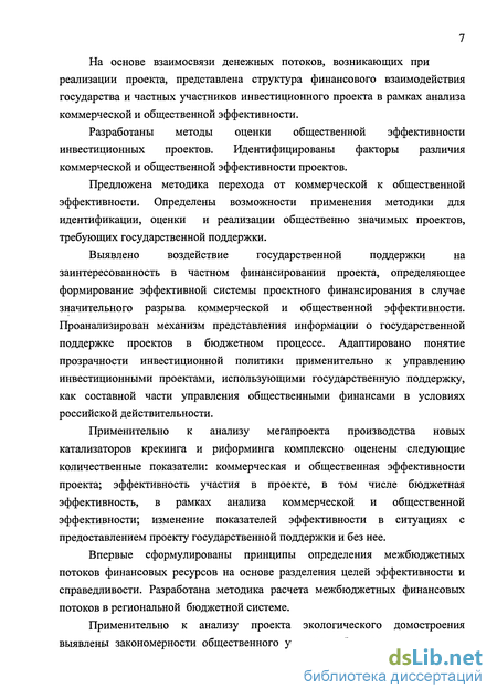 Разработаны методы оценки общественной эффективности инвестиционных проектов. Идентифицированы факторы различия коммерческой и общественной эффективности проектов.