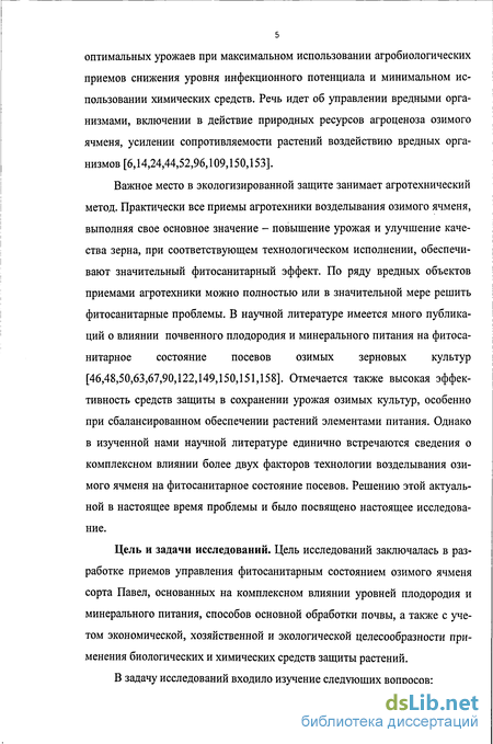 оптимальных урожаев при максимальном использовании агробиологических приемов снижения уровня инфекционного потенциала и минимальном использовании химических средств. Речь идет об управлении вредными организмами, включении в действие природных ресурсов агроценоза озимого ячменя, усилении сопротивляемости растений воздействию вредных организмов [6,14,24,44,52,96,109,150,153].