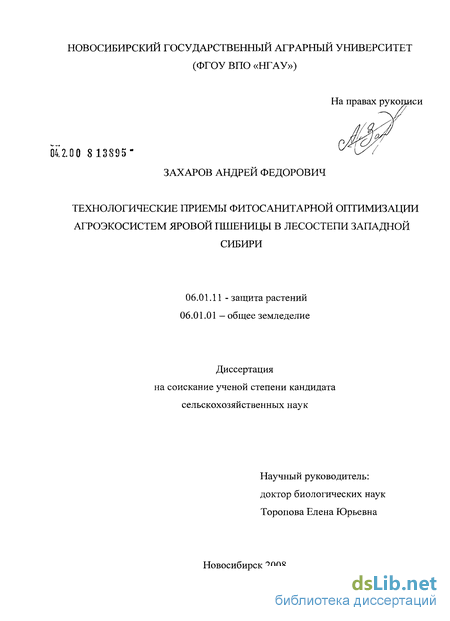 Личный вклад соискателя. Автор диссертации, являясь исполнителем тематики исследований ФГОУ ВПО НГАУ № 01.200 113933 «Совершенствование систем защиты растений от вредных организмов на эпифитотиологической основе», принимал непосредственное участие в разработке программы исследований, самостоятельно проводил опыты и наблюдения в полевых и лабораторных условиях, обобщал и анализировал экспериментальные данные.