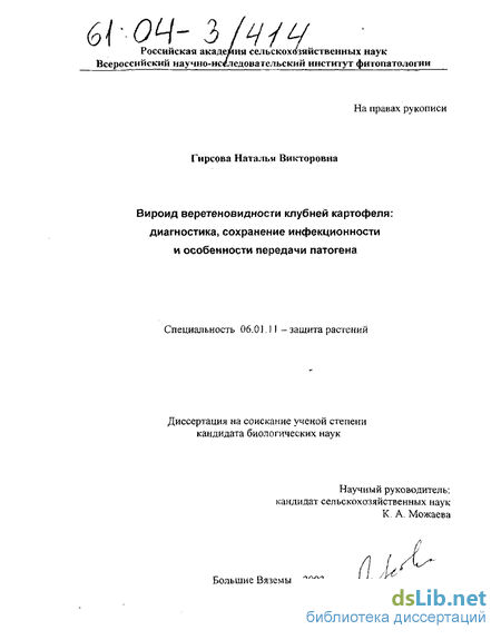4.3. Возможность сохранения и передачи вироида через почву и с растительными остатками 61