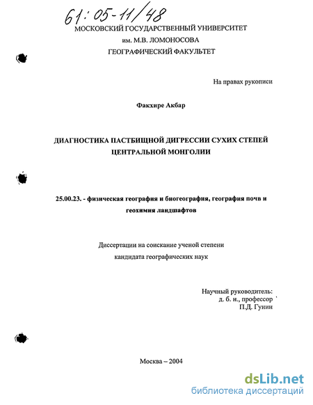 Постановка проблемы и актуальность темы Актуальность эколого-ботанического исследования сухих степей Центральной Монголии, занимающих более 36% территории страны, с точки зрения экологии растительных сообществ развивающихся в жестких экологических условиях, обусловлена как запросами науки, так и запросами практики землепользования в этом важном пастбищно-земледельческом регионе. Известно, что современное землепользование сопровождается негативными последствиями, выразившимися в настоящее время в развитии деградационных процессов, которые создают реальную опасность возникновения экологически кризисных ситуаций (Чернов, 1990; Добровольский, 1999, 2002). Поэтому все аспекты экологии должны найти и сохранить свое место в общем движении за рациональное землепользование. При этом особое значение имеют региональные исследования, которые создают необходимую базу для сравнительного анализа состояния природной среды и, в частности, растительности в зависимости от различных факторов, в том числе обусловленных хозяйственной деятельностью. Однако, несмотря на усилия экологов, антропогенные воздействия на окружающую среду практически повсеместно оказываются деструктивными. Там, где доминирует человеческая деятельность, происходит дестабилизация растительного покрова из-за резкого ослабления природных механизмов, обеспечивающих поддержание экологического равновесия в растительных сообществах. Известно, что в настоящее время до 33,5% пастбищных угодий территории в подзоне сухих степей Монголии находятся в плохом и очень плохом состоянии (Ecosystems of Mongolia, 1995).