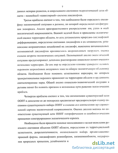 Третья проблема состоит в том, что необходимо было определить специфику экологической ситуации в регионе, по которой определяется конфигурация экокаркаса. Анализ пространственного распределения юн, узлов и осей экологической напряженности. Важной задачей было и проведение экологической опенки территории области, то есть установление природно-ллндшафтной дифференциации, определение состояния ландшафтов и их компонентов, установление антропогенных воздействий на ландшафт, выяснение потенциальных возможностей ландшафтов противосюять антропогенным нагрузкам, оценка степени остроты экологических ситуаций. Полноценный анализ эколс шческой ситуации предусматривает детальное рассмотрение социально-экономического положения территории. До сих пор не определено влияние гранереги лальных переносов загрязнённых воздушных масс на общую экологическую обстановку области. Необходимо было выяснить естественные коридоры, по которым трансрегиональные переносы проникают на территорию области и предложить соответствующие меры. Общий анализ социально-экономической ситуации в регионе помог бы выявить причины и возможные пути решения экологических проблем.