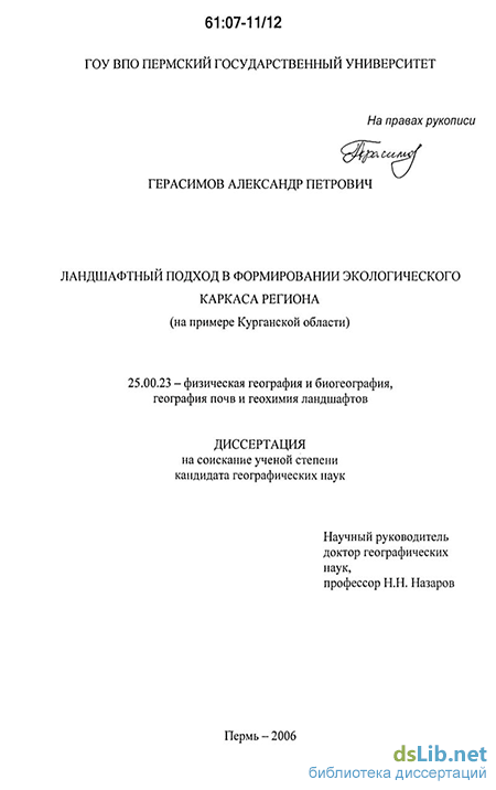 Цель исследования – разработка ландшафтного подхода и методов формирования экологического каркаса территории Курганской области.