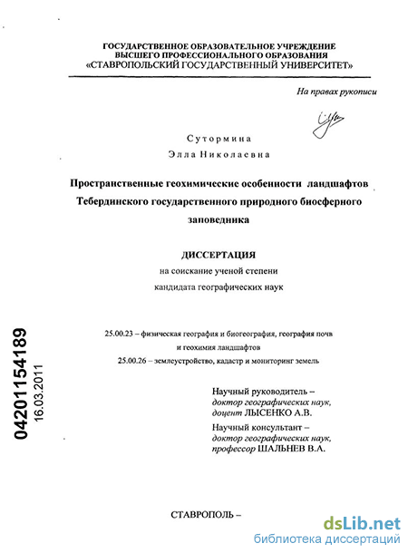 Апробация работы и публикации. Основные положения диссертации были представлены на международных и региональных конференциях: Международная научно-практическая конференция «Природно-ресурсный потенциал, экология и устойчивое развитие регионов России» (Пенза, 2007); Международная научно-практическая конференция «Современные проблемы природопользования, охотоведения и звероводства», (Киров, 2007); научно-практических конференций «Университетская наука - региону», (Ставрополь, 2007, 2008); Материалы конференций членов Русского географического общества Ставропольского отдела (Ставрополь 2009, 2010). По теме диссертации опубликовано 11 работ, в числе которых 2 в изданиях, рекомендованных ВАК Российской Федерации.