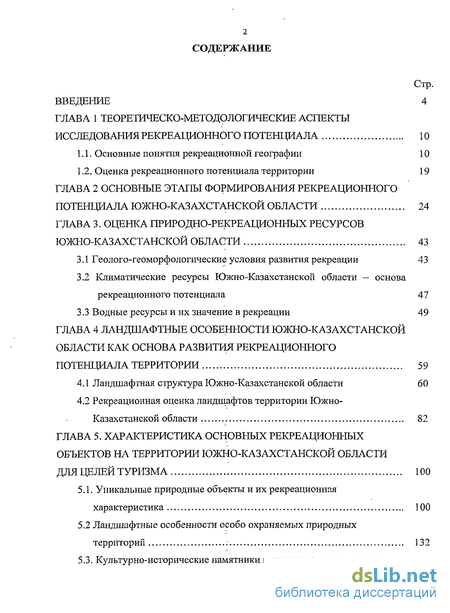 Глава 5. Характеристика основных рекреационных объектов на территории южно-казахстанской области для целей туризма 100