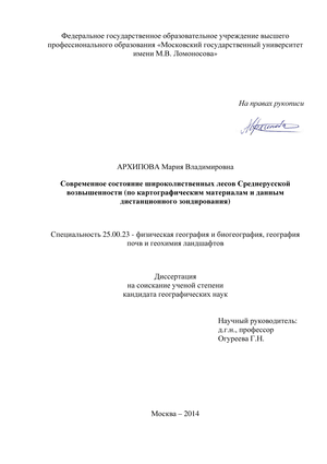 Исходные материалы и личный вклад соискателя. В основу работы положены материалы, собранные автором в ходе полевых работ (2003-2008, 2013 гг.) – полные и маршрутные геоботанические описания лесов Среднерусской возвышенности по стандартным методикам. Работы велись по трансекту, для которого проведена обработка: данных дистанционного зондирования и исторических картографических материалов. Автором проведен анализ литературных и фондовых материалов, статистическая обработка данных, геоинформационное картографирование территории и интерпретация космических снимков. Создана база данных по широколиственным лесам, составлена серия карт по оценке современного состояния лесов Среднерусской возвышенности.