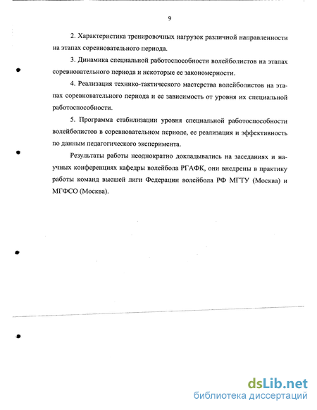 5. Программа стабилизации уровня специальной работоспособности волейболистов в соревновательном периоде, ее реализация и эффективность по данным педагогического эксперимента.