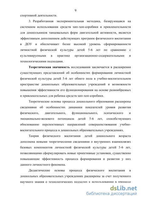Вместе с тем в данном документе, как и в большинстве предыдущих программно-нормативных актов, в контексте состава главных проективных установок учебно-воспитательного процесса в ДОУ отсутствует задача формирования личностной физической культуры дошкольников. Это, по нашему мнению, серьезное упущение разработчиков Госстандарта дезориентирует специалистов ДОУ и не обязывает их системно заниматься формированием и развитием данной личностной характеристики ребенка, во многом обеспечивающей эффективную реализацию базовых жизненных функций. Одним из возможных путей нивелирования данного недостатка является разработка новых парциальных технологий и методик формирования личностной физической культуры детей дошкольного возраста, базирующихся на преимущественном использовании привлекательных для ребенка видов и форм двигательной активности (Н. Н. Николаева, 2005; Р. Нирмаейер, М. Зайфферт, 2006). В связи с вышеизложенным в ходе определения задач настоящего исследования одной из приоритетных считалась разработка методики формирования личностной физической культуры дошкольников 5-6 лет с широкомасштабным использованием средств хип-хоп-аэробики. Выбор данного направления фитнеса в качестве базового средства экспериментальной методики обусловлен следующими очевидными аргументами: