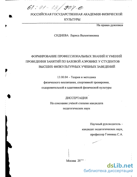 ГЛАВА 5. Методика формирования профессиональных знаний и умений преподавания оздоровительной аэробики у студентов учебного заведения физической культуре