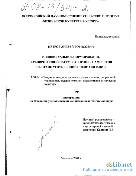 ПРЕДМЕТ ИССЛЕДОВАНИЯ. Методика индивидуального нормирования тренировочной нагрузки у борцов-самбистов.