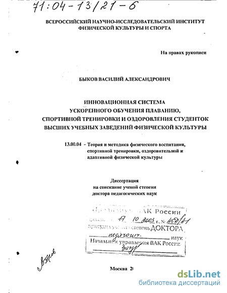Теоретические основы совершенствования методики обучения двигательным (плавательным) движениям