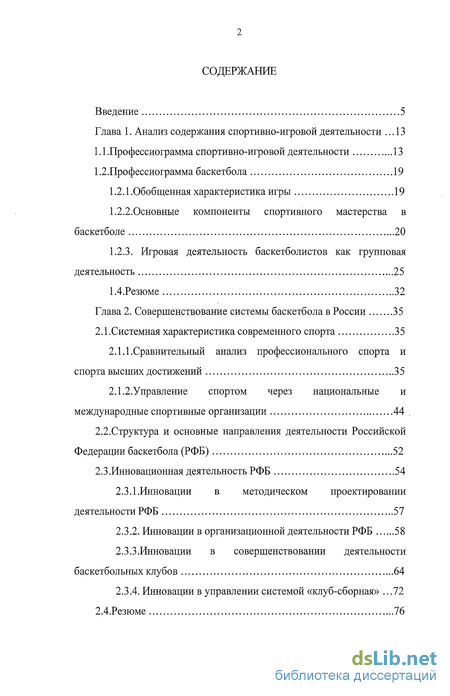 Глава 2. Совершенствование системы баскетбола в России 35