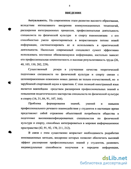 Существенный резерв в улучшении качества теоретической подготовки специалиста по физической культуре и спорту связан с целенаправленным освоением новых данных не только отечественной, но и зарубежной спортивной науки и практики. С этих позиций иностранный язык является важнейшим средством расширения профессиональных знаний и повышения педагогического мастерства специалиста по физической культуре и спорту (16, 31, 84, 91, 107, 164).