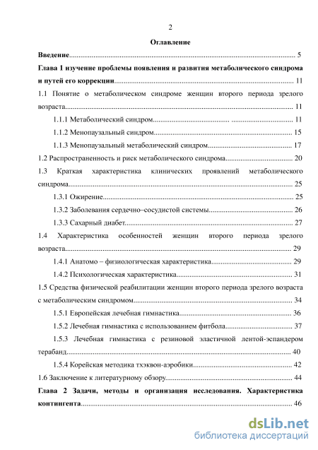 Предмет исследования: структура и содержание комплексной программы физической реабилитации женщин второго периода зрелого возраста с метаболическим синдромом.