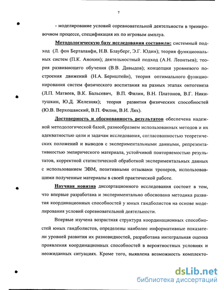 Научная новизна диссертационного исследования состоит в том, что впервые разработана и экспериментально обоснована методика развития координационных способностей у юных гандболистов на основе моделирования условий соревновательной деятельности.