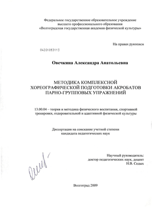 - Экспериментальное обоснование методики комплексной хореографической подготовки акробатов парно-групповых упражнений на этапе начальной спортивной специализации