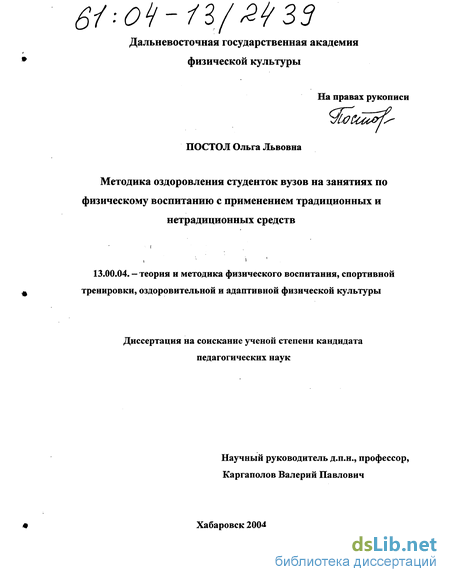 Предмет исследования: методика оздоровления студенток вузов гуманитарного профиля на занятиях по физическому воспитанию с применением традиционных и нетрадиционных средств в климатических условиях Приморского края.