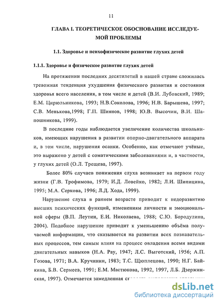 1.1. Здоровье и психофизическое развитие глухих детей 11