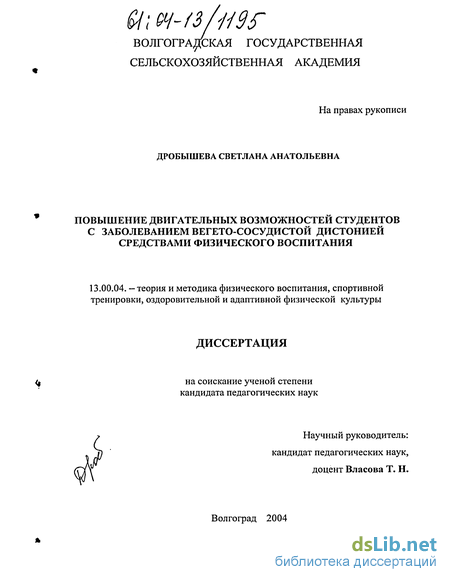 студентов специального отделения с заболеванием вегето-сосудистой дистонией посредством увеличения двигательной активности . на академических занятиях по дисциплине «Физическая культура».