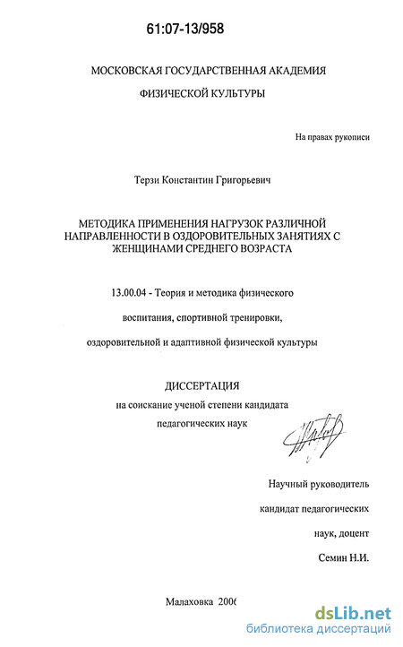 Моль, 1989; К. Эверсон, 1989; Д. Паркер 2002 и др.). В научно-методической литературе широко представлены данные, свидетельствующие об эффективности тренировок в аэробном режиме, направленных на снижение избыточного веса (Л. Купер, 1979; Т.С. Лисицкая, 1998; Дж. X. Уилмор, 2001; М. Клитгард, 2003 и др.). Вместе с тем, до настоящего времени такой аспект данной проблемы, как сочетание нагрузок различной направленности в оздоровительных занятиях с женщинами среднего возраста, изучен не в полной мере, что и послужило основанием для проведения настоящего исследования.