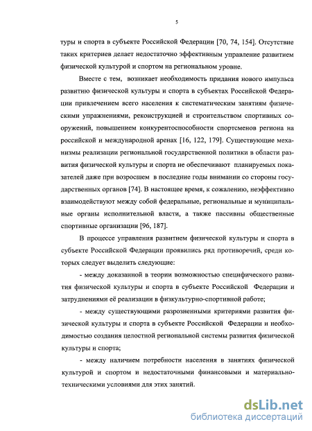 В процессе управления развитием физической культуры и спорта в субъекте Российской Федерации проявились ряд противоречий, среди которых следует выделить следующие: