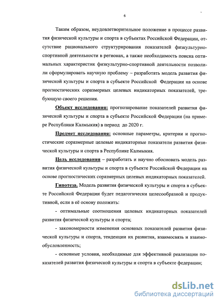 Таким образом, неудовлетворительное положение в процессе развития физической культуры и спорта в субъектах Российской Федерации, отсутствие рационального структурирования показателей физкультурно-спортивной деятельности в регионах, а также необходимость поиска оптимальных характеристик физкультурно-спортивной деятельности позволили сформулировать научную проблему – разработать модель развития физической культуры и спорта в субъекте Российской Федерации на основе прогностических соразмерных целевых индикаторных показателей, требующую своего решения.