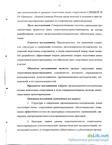 Предметом исследования избраны организационно-методические основы подготовки спортсменов и пути совершенствования системы подготовки юных ориентировщиков.