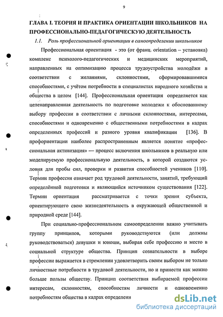 ГЛАВА І. Теория и практика ориентации школьников на профессионально-педагогическую деятельность 9